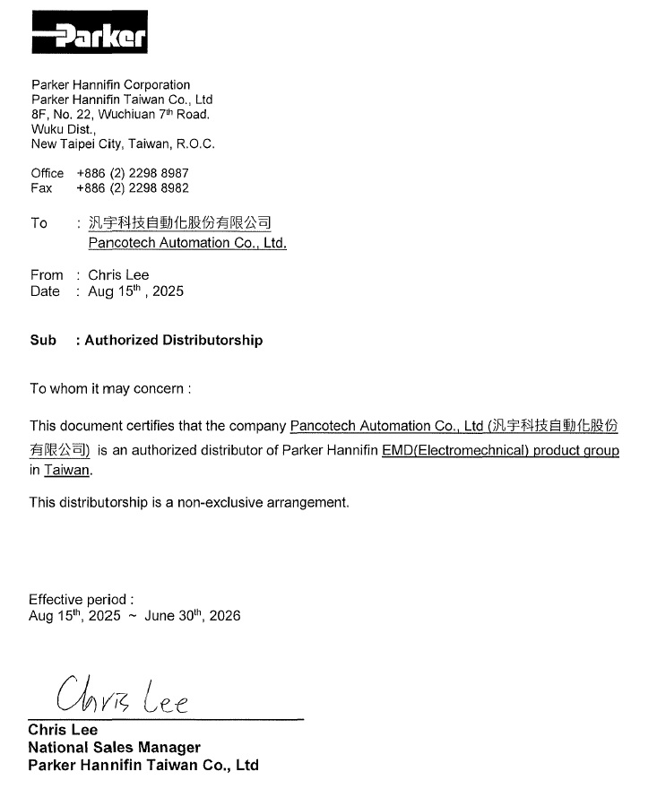 Parker官方授權證明