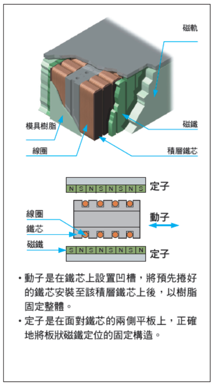 使用本公司獨有的磁力相抵結構實現低噪音化和增長導軌壽命