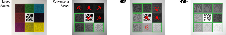 HDR+ 是專利申請中的先進演算法,可自行進一步地增加局域對比,突破原本的 HDR 技術藩籬。這樣單次採集可產生更一致的圖像,提供的景深更深,讓生產線速度更快,改善多點裝配驗證的處理能力,還可改善處理難以讀取的代碼。